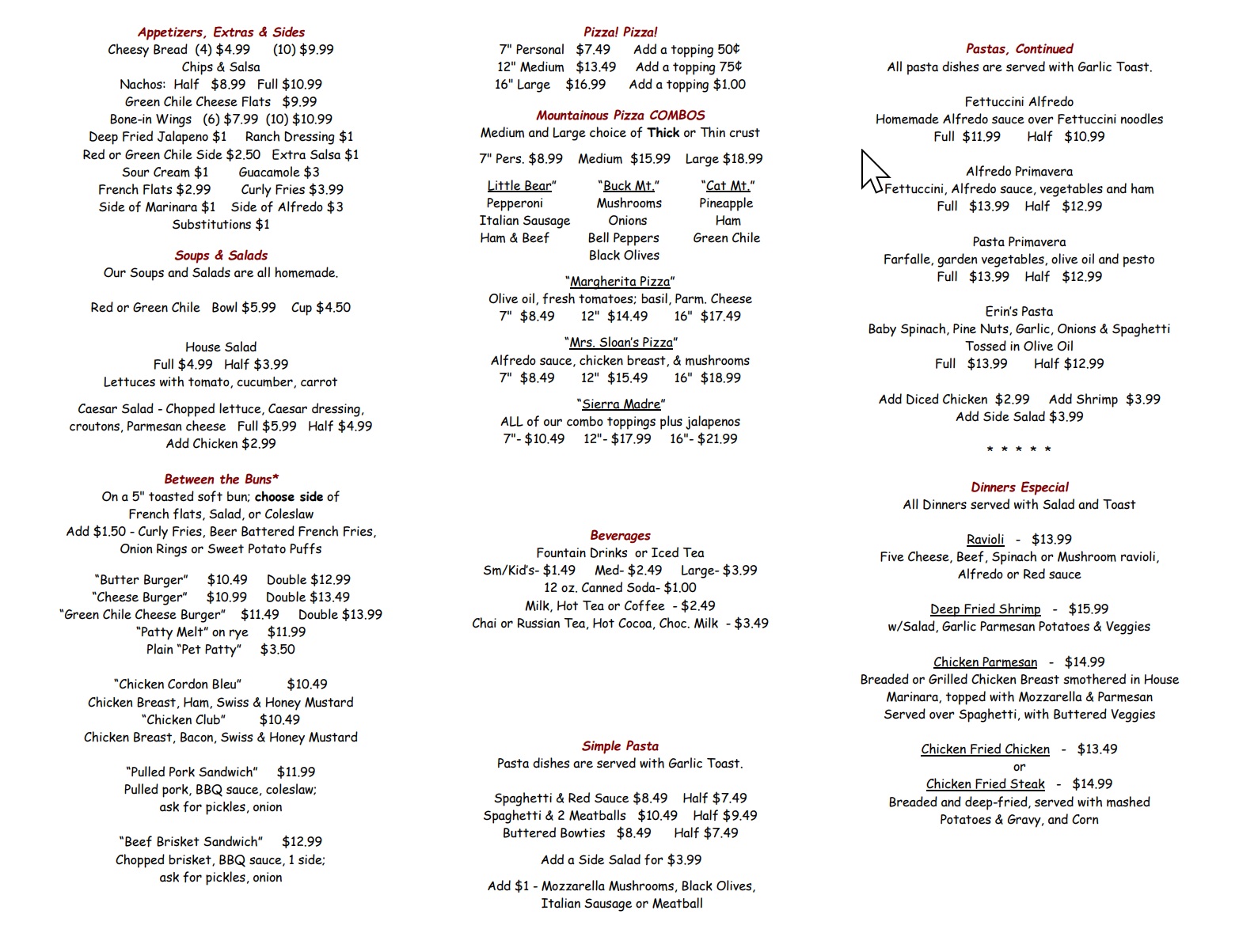 Pizza, Burgers, Spaghetti, Tacos, Deli Sandwiches, Deserts, and much more are served from 11:00 A.M. to 8:00 P.M. Open Monday thru Saturday and closed on Sunday. Whatever you are craving, The All-Gon Restaurant and Pizzeria is serving it hot!