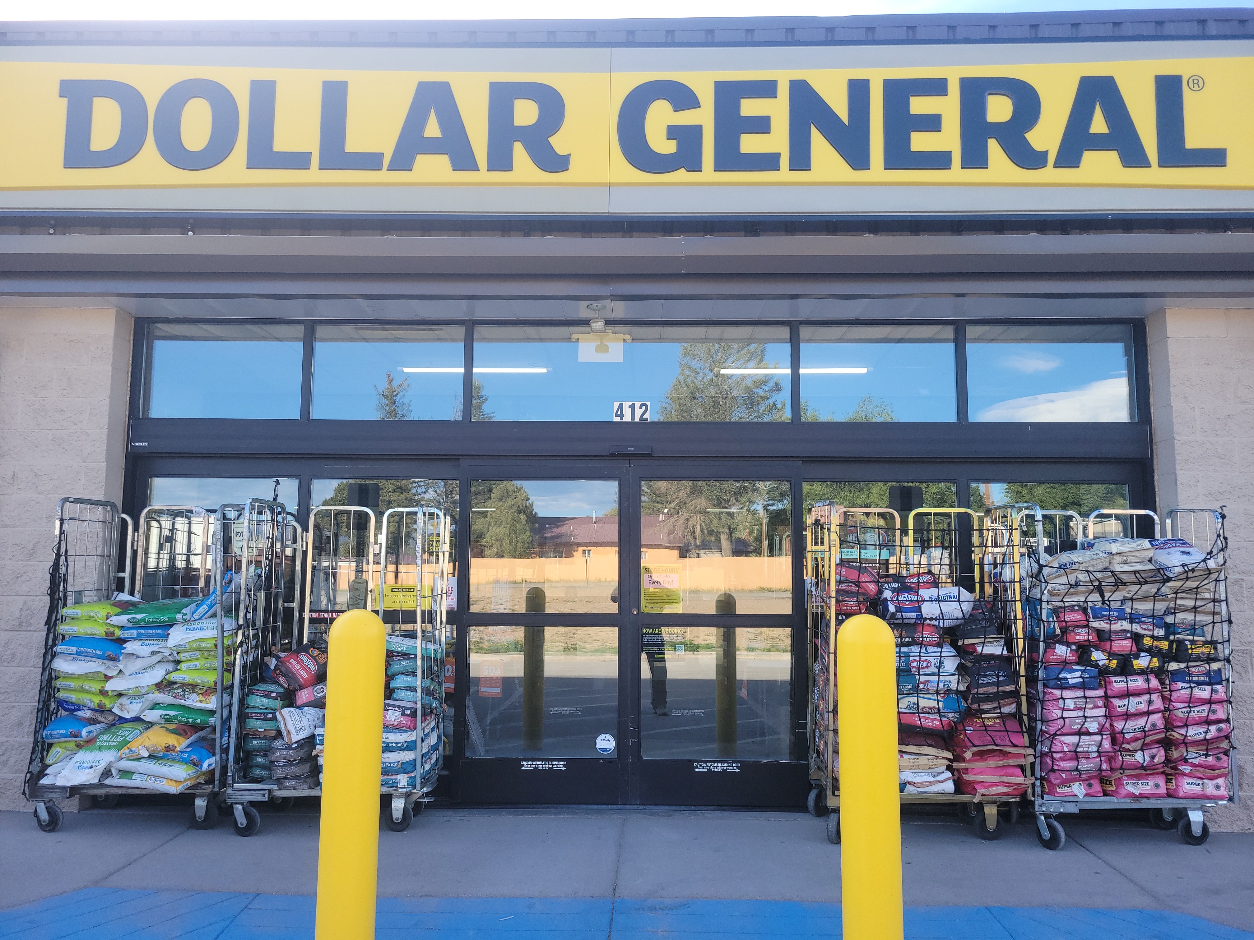 Open 7:00 A.M. to 10:00 P.M. Open everyday of the week. All the stuff you come to expect from a Dollar General. Milk, eggs, cheese, frozen foods and more comprise the fresh selection. They even have a cheesecake and of course ice cream! Dry goods, health & beauty, pantry goods, and even some apparel. Don't forget to stock up on bottled water either.
